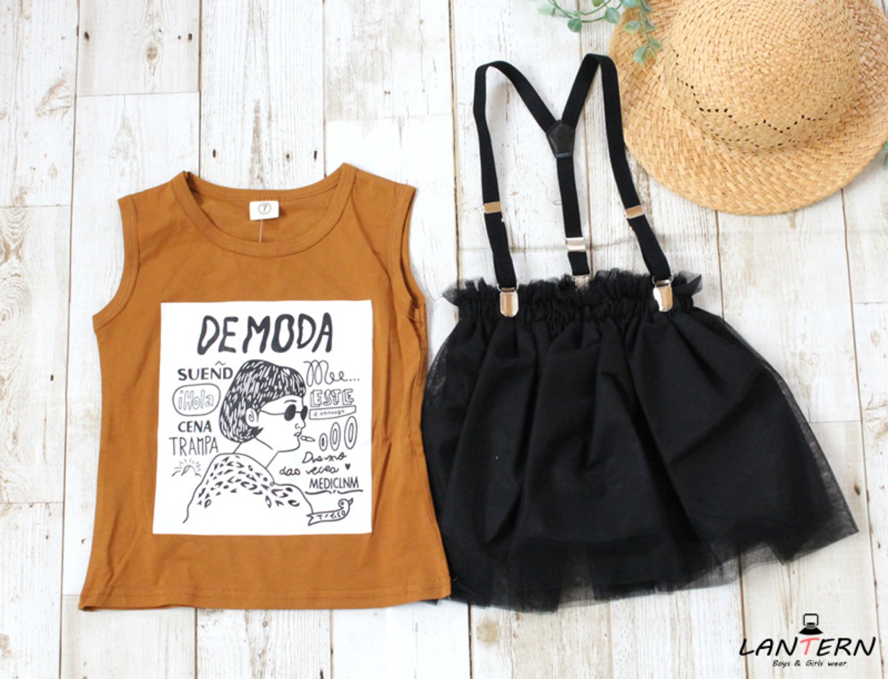サスペンダー チュチュワンピ 3点セット ワンピース スカート ブラック 袖なし ノースリーブ 女の子 90 ベビー 海外輸入 インポート 子供服 夏