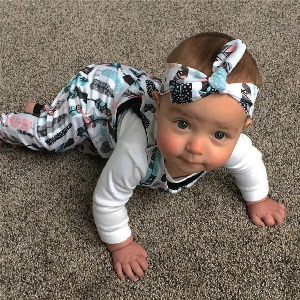 カラフルフェザープリントがおしゃれな、ベビーロンパース